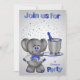 Invitation vos invités à une fête de divorce pour toute personne en général avec une carte montrant un mignon éléphant portant des lunettes de vue sur une jolie veste avec une cravate à l'arc portant un plateau avec son coffre. La bouteille de champagne est réfrigérée dans un seau glacé élégant contre un arrière - plan dégradé avec des étoiles argentées et du texte. Conception par Laurie Schneider/Elements par La galerie de Jackie/Diana'z Creationz