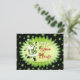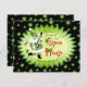 Des stars vertes et des notes musicales avec une musique joyeuse Père Noël Elf jouant du banjo sur une invitation amusante à Noël. Les informations de la maison ouverte sur le retour de la carte peuvent être personnalisées en modèle fourni.