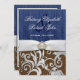 Invitations de mariage occidental en cuir et Denim Damask—faites correspondre les cartes RSVP et d'autres informations plus bas sur cette page. Chaque invitation présente son empreinte damassée de feuilles florales en dégradé argenté sur un arrière - plan imprimé en cuir marron. L'avant et l'arrière sont également ornés d'un orchestre blanc imprimé avec une embellie de diamants. Ces invitations à un mariage sont réglées sur un stock de carte de base de haute qualité; cependant, vous pouvez changer le stock en lin, feutre (gaufré), recyclé et plusieurs teintes métalliques si vous voulez sous le numéro 2 (choisissez votre style, votre taille et votre type de papier) sous le bouton orange ajouter au chariot. Une liste des coûts supplémentaires pour un stock de carte de crédit s'affiche également sous cette option. Chaque invitation est accompagnée d'une enveloppe blanche.