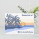 Inspiré par les shorts de plage et les chemises aloha des années soixante, ce motif utilise des bandes pin pour créer le rivage tandis que les surfeurs attendent la pause à Big Sunset sur la Rive Nord d'Oahu.Ce design est coordonné avec nos invitations Big Sunset, cartes de voeux et timbres-poste. Cette invitation personnalisable se décline en trois couleurs.