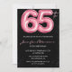 Invitations de 65e anniversaire noir Balloon Glam Parties scintillant rose étincelle