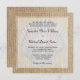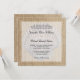 Un faire-part de mariage orienté de plage comportant un graphique de toile de jute, un coquillage et une frontière blanche. Perfectionnez pour un mariage de plage rustique. Personnalisez facilement avec vos détails d'événement. LES CONCEPTIONS SONT LES GRAPHIQUES IMPRIMÉS PAR APPARTEMENT -- TOILE DE JUTE NON RÉELLE.