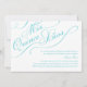 Une élégante Quinceanera Invitation avec un arrière - plan blanc et "Mis Quince Años" en texte bleu turquoise.
