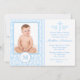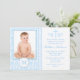 Damassé de bleu d'invitations de baptême de photo de tableau de garçon