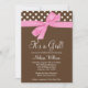 Une invitation rose et brune élégante de baby shower. Comporter le pois et un graphique rose d'arc. Perfectionnez pour un baby shower de petite fille. À la mode et mignon. Personnalisez facilement pour votre partie ! Les conceptions sont les illustrations/dessins imprimés par appartement - RUBAN NON RÉEL.