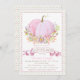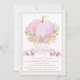 Petites invitations de douches bébé citrouilles avec jolie citrouille couleur rose et fleurs avec une jolie bannière rose sur un arrière - plan pastel point. Cette invitation de baby shower citrouille rose sucré est facilement customisée pour votre événement en ajoutant simplement vos détails dans le style de police et la couleur que vous préférez.