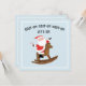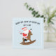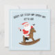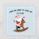 Amusants invitations de fête moderne mettant en vedette Père Noël sur un cheval à bascule et ligne humoristique.