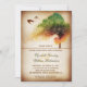 arbre coloré de coeurs d'amour et deux belles invitations de coutume de partie de fiançailles de plan d'étude d'oiseaux