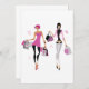 Le design parfait pour tous ceux qui aiment faire du shopping. Il y a deux femmes qui ont fait des courses. Ils se promènent tous les deux en tenant un certain nombre de sacs de courses. Ce design de shopping pour femmes est très agréable pour ces invitations