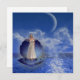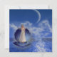 Ange se tenant dans une coquille de palourde flottant sur l'eau d'océan.