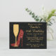 Cette invitation sophistiquée comporte un verre de champagne d'or avec une chaussure stylet rouge de talon haut. L'arrière - plan est noir avec un filigrane floral de damassé pour lui donner la texture. Personnalisez cette invitation avec les détails de votre partie. Le dos a l'abondance de l'espace pour information. J'ai créé cet invitation avec des anniversaires à l'esprit, cela fonctionne également aussi bien pour la nuit d'une fille ou la partie de célibataire. J'ai également cet invitation dans une série de modèles de couleurs. Si vous ne trouvez pas ce que vous recherchez mais aimez la conception, juste message j'avec votre demande.