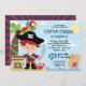 Ahoy-moi les coeurs ! C'est votre capitaine qui parle ! J'appelle tous les enfants pour une aventure de fête de pirates. Fouettez-moi les bois, vous danserez une bousculade avec cette invitation de la fête des pirates. Doté d'un adorable pirate qui vient de trouver son trésor. Tout à bord pour la fête des pirates ou marcher sur la planche ! Argh ! Cela fait partie d'une ligne d'invitations de fêtes de pirates et des produits de fêtes de pirates connexes. Choisissez parmi nos invitations pour les fêtes de pirates pour correspondre à la couleur de l'oeil, des cheveux ou de la peau de votre enfant.