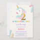 Invitations d'anniversaire de la licorne du 2e ann