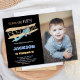 Invitations d'anniversaire de l'avion Bleu noir avec photo
