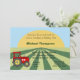 Invitation Anniversaire de enfant avec tracteur rouge et soleil levant. Idéal pour les enfants de la ferme ou les enfants qui aiment les tracteurs et l'agriculture. Vous customisez facilement avec les détails de votre fête. Âge de l'enfant sur tracteur.
