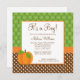 Une invitation orientée de baby shower de chute mignonne et moderne. Comporter un citrouille, le pois et les rayures aux nuances du vert, du brun et de l'orange. Perfectionnez pour un baby shower de garçon, de fille ou de neutre de genre.