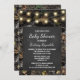 Invitations de baby shower de tableau de Camo de chasse - caractéristiques un arrière - plan imprimé de camouflage de chasse avec des éléments de conception des lumières de tableau et de ficelle. Voyez la pleine collection assortie de conception à cette page.