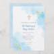 Baptême simple et élégant / invitation à baptiser en bleu aquarelle et parsemer d'or.