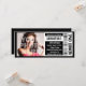 Invitations de billets, Billet noir et blanc, customisez avec votre photo et vos informations de fête. Faites une excellente et unique invitation de billets de fête pour n'importe quelle occasion!