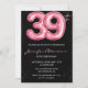 Invitations de Black Pink 39e anniversaire Ballons Glam