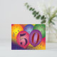 Facile à customiser les invitations de carte postale pour la fête du 50e anniversaire. Ballons colorés aux décors arrière - plans et confettis de couleur arc-en-ciel.