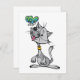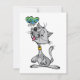 Un design magnifique d'un chat assis en regardant un petit papillon qui vole juste au-dessus de son nez. Le chat est gris et a sa langue rose et semble très heureux avec le monde. Le papillon est adorable et vole juste au-dessus du chat. Ce chat et un papillon ont l'air super sur ces invitations