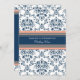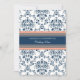 Invitations élégantes de renouvellement de voeu de mariage dans le motif floral classique foncé de bleu marine, de rose de pêche, de gris de charbon de bois et blanc de damassé avec le texte entièrement personnalisable d'inclure vos détails de cérémonie de renouvellement de voeu.