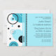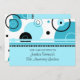 Invitations personnalisables de partie de déjeuner d'anniversaire des employés en cercles modernes et contemporains et motif de pois bleus et noirs et blancs. Célébrez beaucoup d'années de service de votre personnel avec ces invitations uniques de partie de déjeuner d'anniversaire de bureau de douane.