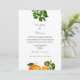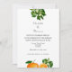 Une invitation à un mariage à destination élégante, idéale pour les couples qui se marient en Floride ; oranges et fleurs d'oranges avec points de polka au verso. Un design très joli, facile à customiser avec vos détails mariages.