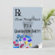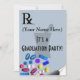 Invitations de diplômés en pharmacie élégantes, prescription dessinée par l'artiste avec un bord en courbe et des médicaments réalistes ajoutés au fond. Personnalisable devant et derrière. Idéal pour les invitations à la sortie de PharmD.