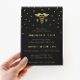 Invitations à la remise des diplômes de l'école de sciences infirmières en or et en noir. Parfait pour célébrer une nouvelle infirmière ! Symbole de confetti et de caducée sophistiqué avec "RN" dans un effet imprimé or chatoyant.