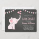 Invitations de douche bébé éléphant pour fille | Rose et noir