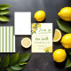 Cet invitation de douche au citron s'inspire de la luminosité et de la simplicité des citrons. Mieux connu pour avoir annoncé que Summer est bien là tout en diffusant un peu de soleil où qu'ils aillent, cet invitation au citron présente la brillante nature d'un citron tout en rendant hommage à la saveur qu'il ajoute à une variété de choses, comme votre cause de célébration ! Avec des citrons accrochés à une branche et reposant dans un coin, ces fruits délicieux entourent une collection mignonne, girly et sophistiquée de polices vertes de nature, ce qui en fait l'ajout parfait à votre mariée ou baby shower! Un arrière - plan jaune aquarelle cravates le regard ensemble pour un éclat de soleil et de bonheur!
