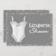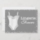 Invitations de douche de lingerie pour la mariée à être. Lingerie Shower Card a des accents gris et blanc en peluche. Customisez avec les détails de votre fête.