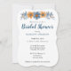 Ces invitations à la douche nuptiale imprimées sur mesure présentent des bords coquillés et une illustration florale de style aquarelle dans des tons bleu et orange plus doux, ce qui les rend parfaits pour les mariages d'automne ou d'automne et des événements spéciaux. Le dos de ces cartes est bleu clair avec un motif fleuri assorti. Utilisez les champs modèles pour personnaliser facilement ces invitations de douche avec vos informations. Avez-vous plus d'informations à inclure? Sélectionnez l'option PERSONNALISER pour ajouter du texte supplémentaire à ces invitations.
