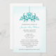 Invitations de douche nuptiale personnalisées avec un lustre bleu clair sur un arrière - plan bleu clair et blanc. Customisez complètement cette invitation de douche nuptiale en cliquant sur "customisez-la" pour plus de choix de police et de couleurs de police qui peuvent être localisés dans la liste déroulante "modifier" pour la sélection de couleur de police.