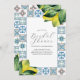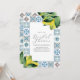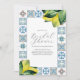 Ces élégantes invitations à la douche nuptiale comprennent des citrons aquarelles dans les tons jaunes avec une rouille et un motif en carreaux Amalfi bleu. La Fête des mariées des mots est placée dans un stationery à la mode lettré à la main style calligraphie typographie imprimable. Un choix charmant pour les mariages de destination en Italie ou une douche à thème italienne. Pour plus d'invitations pour des fêtes, visitez www.zazzle.com/dotellabelle