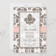 Jolie fleur de lis nuptiale invitation à la douche nuptiale avec un style de brin rose et brun au coeur contrasté et une bordure légèrement damassée brun foncé et blanc. Artisanat et design © Chrissy H. Studios, LLC.Tous droits réservés.