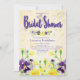 Invitations de douche nuptiale à fleurs violet et jaune. Invitation à la nuptiale de fleurs violettes et jaunes pour une belle mariée. Ce design d'invitation est créé avec des arrière - plans texturés naturels avec des panneaux de style aquarelle, tulipes et autres fleurs. D'autres options d'invitation de douche nuptiale sont disponibles sur Metro-Event.com et MetroEvents sur Zazzle. Pour plus de personnalisation, cliquez sur le bouton "Customiser" et utilisez notre outil de conception pour modifier ce modèle. Tous les styles de texte, couleurs, tailles peuvent être modifiés selon vos besoins. Tous les éléments sont imprimés sur nos produits de haute qualité, ils n'incluent pas d'or, de bijoux, de gaufrage ou d'autres éléments textiles. Veuillez contacter Metro-Events pour tout besoin de produit personnalisé.