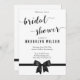 Invitations de douche nuptiale en noir et blanc avec arc noir et texte personnalisable