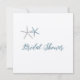 Invitations de douche nuptiale Starfish. Plat, invitations carrés sur papier de champagne métallique (vous pouvez changer), avec le texte modèle bleu. Customisez à l'aide des lignes de texte modèle à l'arrière. L'arrière a une bordure d'étoile de mer. Est livré avec une enveloppe blanche et ***cartes de carré nécessitera plus d'affranchissement.