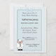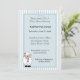 Jolie invitation à l'agneau avec un arrière - plan bleu et un arc bleu. L'agneau a une suce bleue autour du cou et une fleur bleue dans ses cheveux. Utilisez notre modèle facile à customiser avec vos informations.