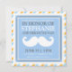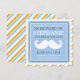 Un petit garçon invitation sur mesure avec un grand design de moustache et des bandes diagonales en bleu et orange combinés au charbon de bois