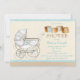 Invitations de douche bébé neutre genre avec belle vintage shabby chic bébé chariot et blocs bébé sur un arrière - plan turquoise bleu et beige. Ces adorables invitations vintages pour douche bébé sans sexe sont facilement customisées pour votre événement en ajoutant simplement vos détails dans le style de police que vous préférez.
