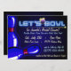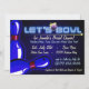 Invitations de douches nuptiales Cosmic Glow Bowling. De bonnes invitations à toute soirée de bowling de nage sur le thème de la douche ! Comprend 2 broches lumineuses bleues et du texte brillant sur la page! Customisez avec vos coordonnées de fête, le nom des épouses, l'emplacement de la fête et les informations rsvp pour un bon moment de balade !