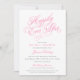 Des invitations à la douche nuptiale Fairytale en rose et gris, avec de belles fleurs typographiques. Le texte du script dit "Heureusement toujours après" en rose, avec un design étoilé sur l'arrière.