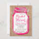 invitation à la douche de la mariée rustique, invitation à la douche de la mariée de pays, bocal de mason, bocal de conserve, invitation à la douche de la mariée de mason, douche de la mariée de l'ouest, douche de la mariée de l'ouest, idées de douches de la mariée de pays, vintage, rose chaud, rose fushia, invitation à la douche de la mariée de burlap