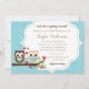 Petit hibou en couple sur invitation à la branche avec arrière - plan de bois, en bleu et or mat.