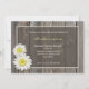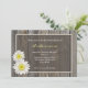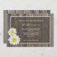 Invitation à la douche nuptiale rustique avec marguerites blanches sur un arrière - plan en bois de grange patiné.