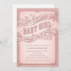 Ce baby shower rose présente un aspect vintage de style occidental ancien. Un invitation festif et amusant pour un baby shower de filles.
